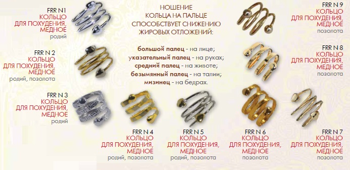 Магнитные медные кольца считаются безлекарственным методом профилактики и оздоровления организма путем воздействия постоянного магнитного поля силой 500 Гаусс на биологически активные точки на пальцах. Кольцо для снижения жировых отложений выполнено в виде спирали, имеющей 3,5 витка. Состав: высококачественная чистая медь; покрытие: родий, золото 18 карат, 3 микрона; 2 неодимовых магнита силой 1500 Гаусс на концах кольца. Действие кольца: Китайская медицина утверждает, что ношение кольца, выполненного в виде представленной спирали, стимулирует биологически активные точки на пальцах, которые соответствуют различным частям тела человека. Стимулирование этих точек улучшает метаболизм, что способствует сжиганию лишнего жира и предотвращает его отложение. Происходит уменьшение объемов тела. Ношение кольца способствует сокращению жировых отложений: большом пальце - на лице; указательном пальце - на руках; среднем пальце - на животе; безымянном пальце - на талии; мизинце - на бедрах. Противопоказания: Наличие кардиостимуляторов или других электронных приборов в организме; беременность; детям до двух лет. Изделие не является медицинской продукцией. Действие магнитов носит индивидуальный характер, результаты применения зависят от особенностей организма и могут различаться |
